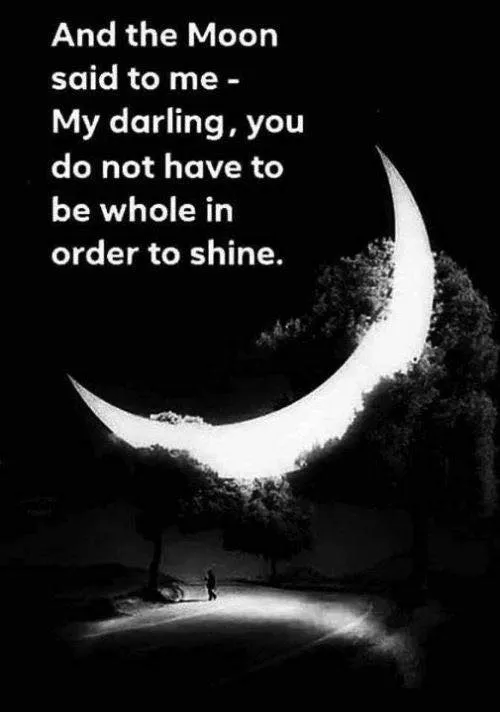 These words carry profound truth! Just as the moon shines brightly in all its phases — whether full, crescent, or new — we too can radiate light, even as we work to heal and regain our sense of wholeness. Healing is a journey, and while we may not feel complete, we can still offer warmth and brilliance to the world.